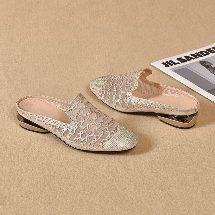 Vintage Lace Slip-On Mules – Low Heel Elegant Loafers