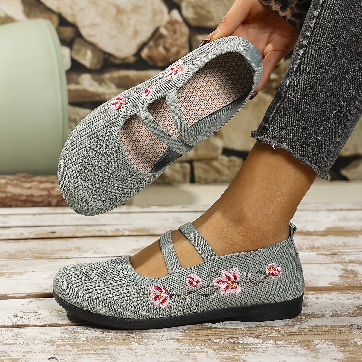 Women'S Spring Floral Knit Ballet Flats